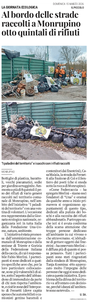 La giornata ecologica - Al bordo delle strade raccolti a Monrupino otto quintali di rifiuti