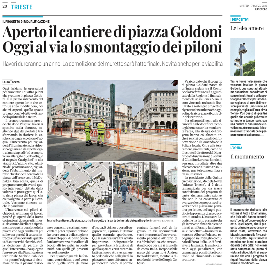 Aperto il cantiere di piazza Goldoni - Oggi al via lo smontaggio dei piloni - il progetto di riqualificazione
