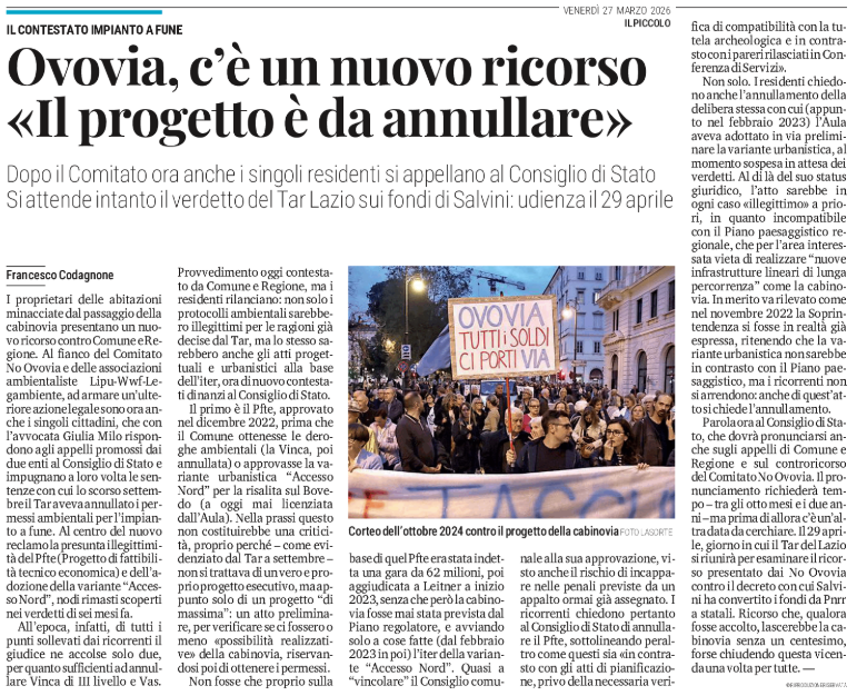 SEGNALAZIONI - No Ovovia - Il comitato si batte in difesa della legalità - (William Starc - Per il Comitato No Ovovia)