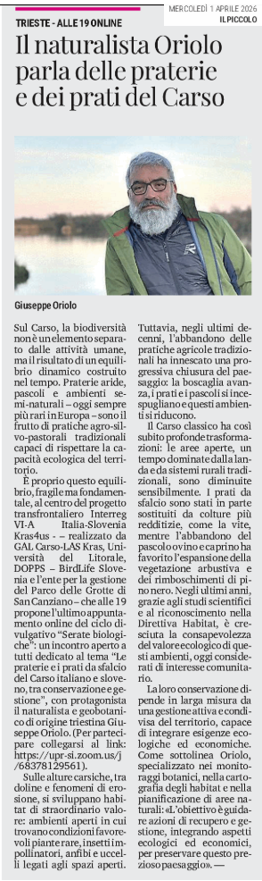 Trieste - alle 19 online - Il naturalista Oriolo parla delle praterie e dei prati del Carso