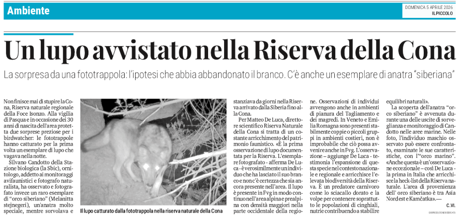 Un lupo avvistato nella Riserva della Cona - La sorpresa da una fototrappola: l'ipotesi che abbia abbandonato il branco. C'è anche un esemplare di anatra "siberiana"