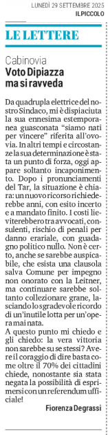 SEGNALAZIONI - Cabinovia - Voto Dipiazza ma si ravveda - (Fiorenza Degrassi)