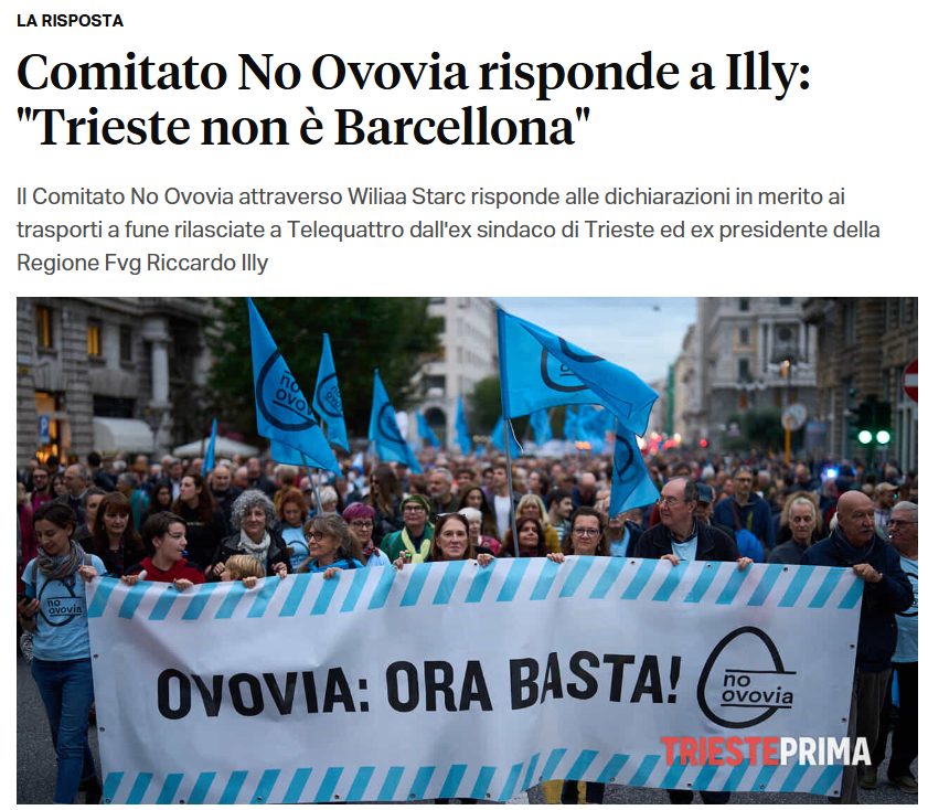 Comitato No Ovovia risponde a Illy: "Trieste non è Barcellona"