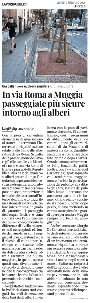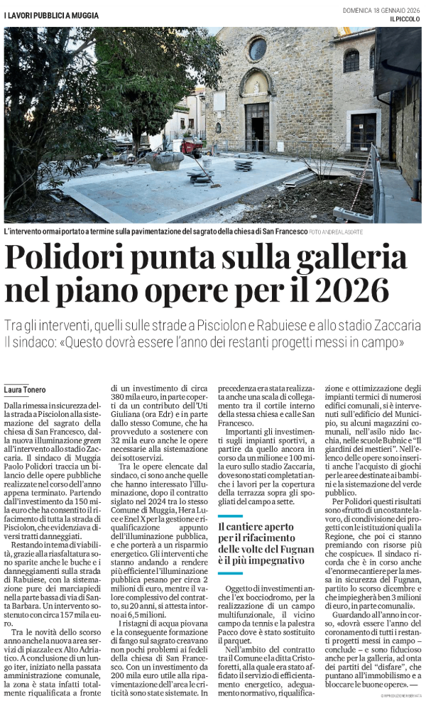 I lavori pubblici a Muggia - Polidori punta sulla galleria nel piano opere per il 2026