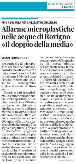 Allarme microplastiche nelle acque di Rovigno «Il doppio della media» - fino a 600 mila per chilometro quadrato