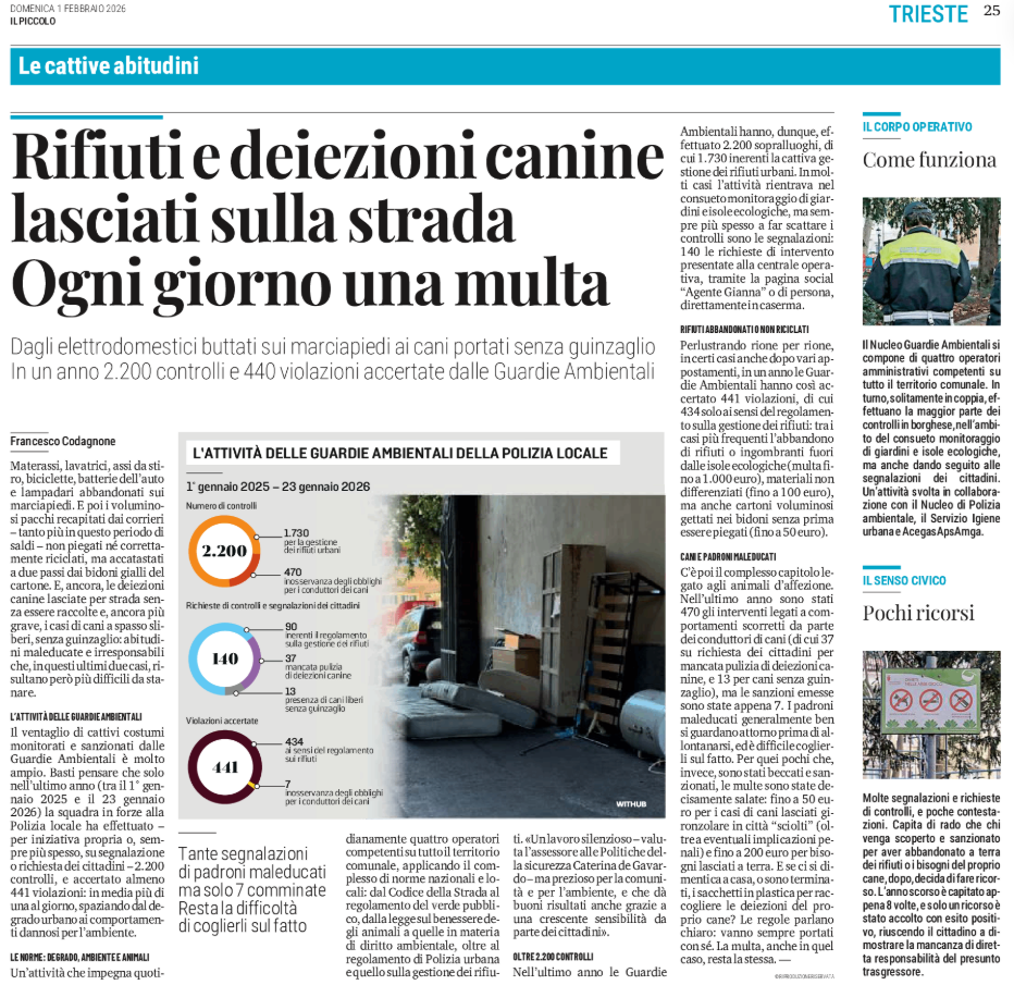 Rifiuti e deiezioni canine lasciati sulla strada - Ogni giorno una multa
