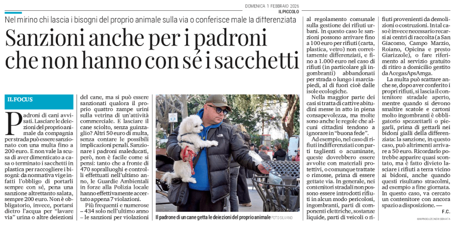 Nel mirino chi lascia i bisogni del proprio animale sulla via o conferisce male la differenziata