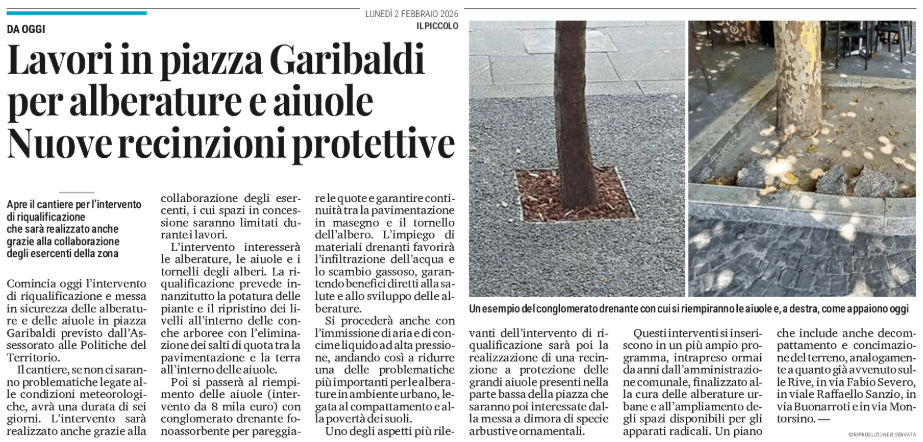 In piazza Garibaldi lavori sulle alberature e recinzioni per proteggere le aiuole - lunedì al via l'intervento di riqualificazione