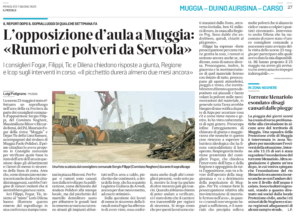 L'opposizione d'aula a Muggia: «Rumori e polveri da Servola» - il report dopo il sopralluogo di qualche settimana fa