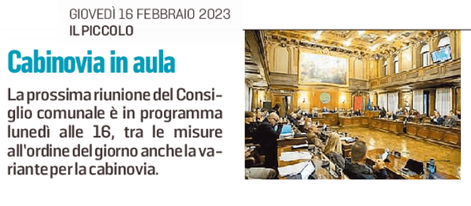 I gruppi consiliari di Partito Democratico, Adesso Trieste, Punto Franco, Movimento 5 Stelle e Movimento 3V hanno denunciato in una conferenza stampa alcuni gravi aspetti legati all’iter della Variante 12 che introdurrebbe il percorso dell’ovovia all’interno del Piano Regolatore.