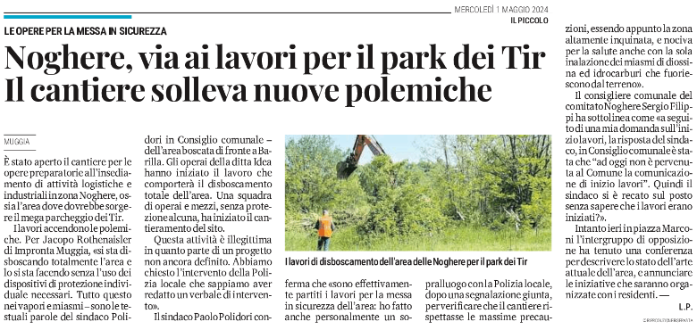 Muggia - Il sindaco Polidori: «Sulle Noghere