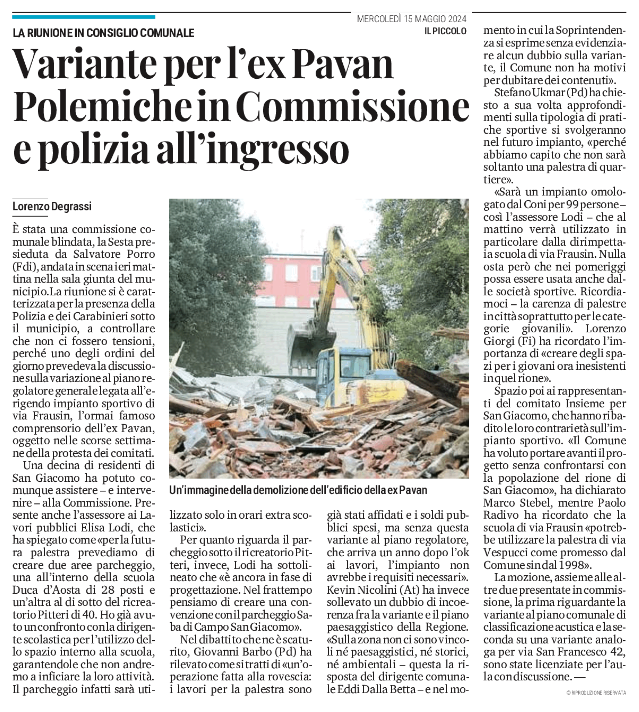 Commissione e polizia all'ingresso - la riunione in consiglio comunale