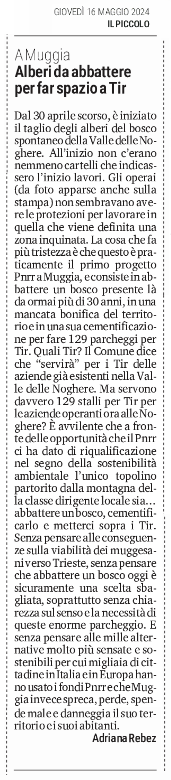 SEGNALAZIONI - A Muggia - Alberi da abbattere per far spazio ai Tir - (Adriana Rebez)