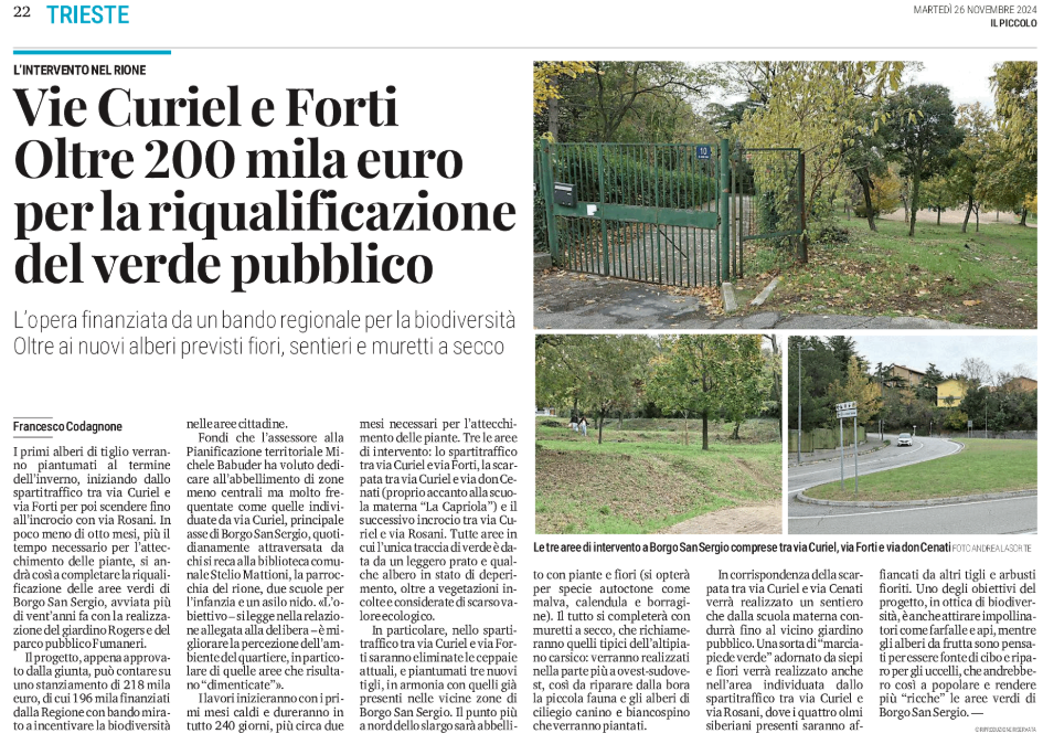 Vie Curiel e Forti Oltre 200 mila euro per la riqualificazione del verde pubblico