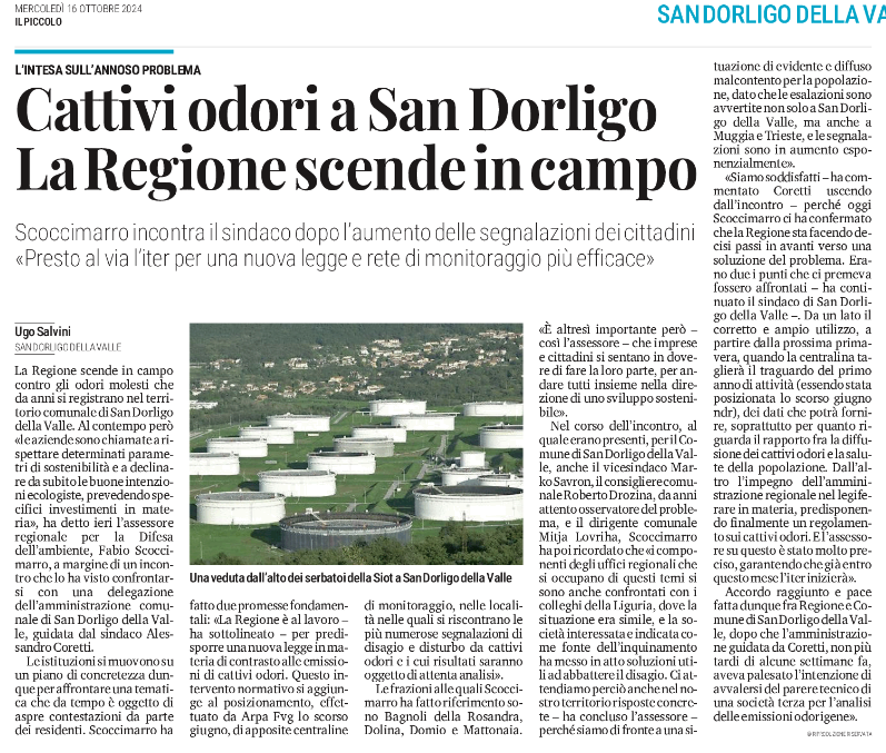 Cattivi odori a San Dorligo - La Regione scende in campo