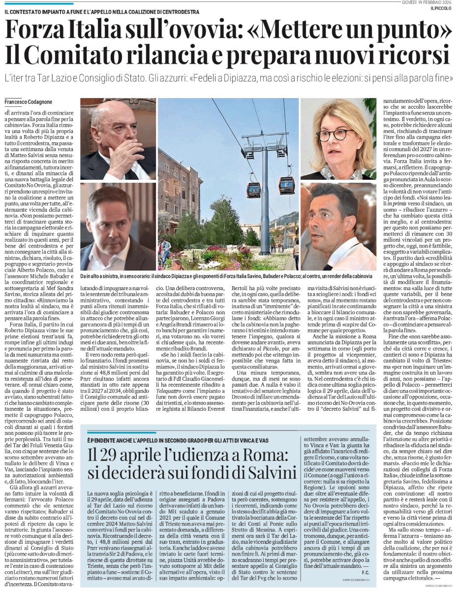 Forza Italia sull'ovovia: «Mettere un punto» Il Comitato rilancia e prepara nuovi ricorsi - il contestato impianto a fune e l'appello nella coalizione di centrodestra