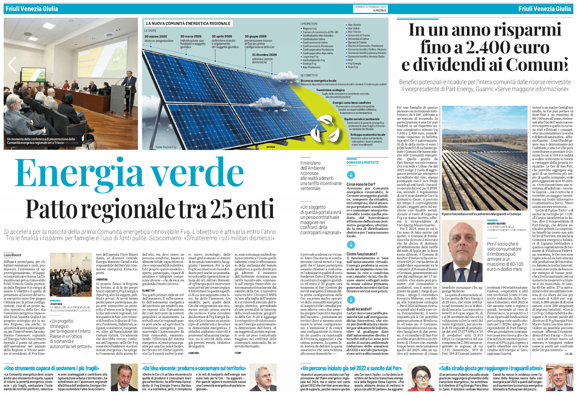 Energia verde - Patto regionale tra 25 enti - Si accelera per la nascita della prima Comunità energetica rinnovabile Fvg.