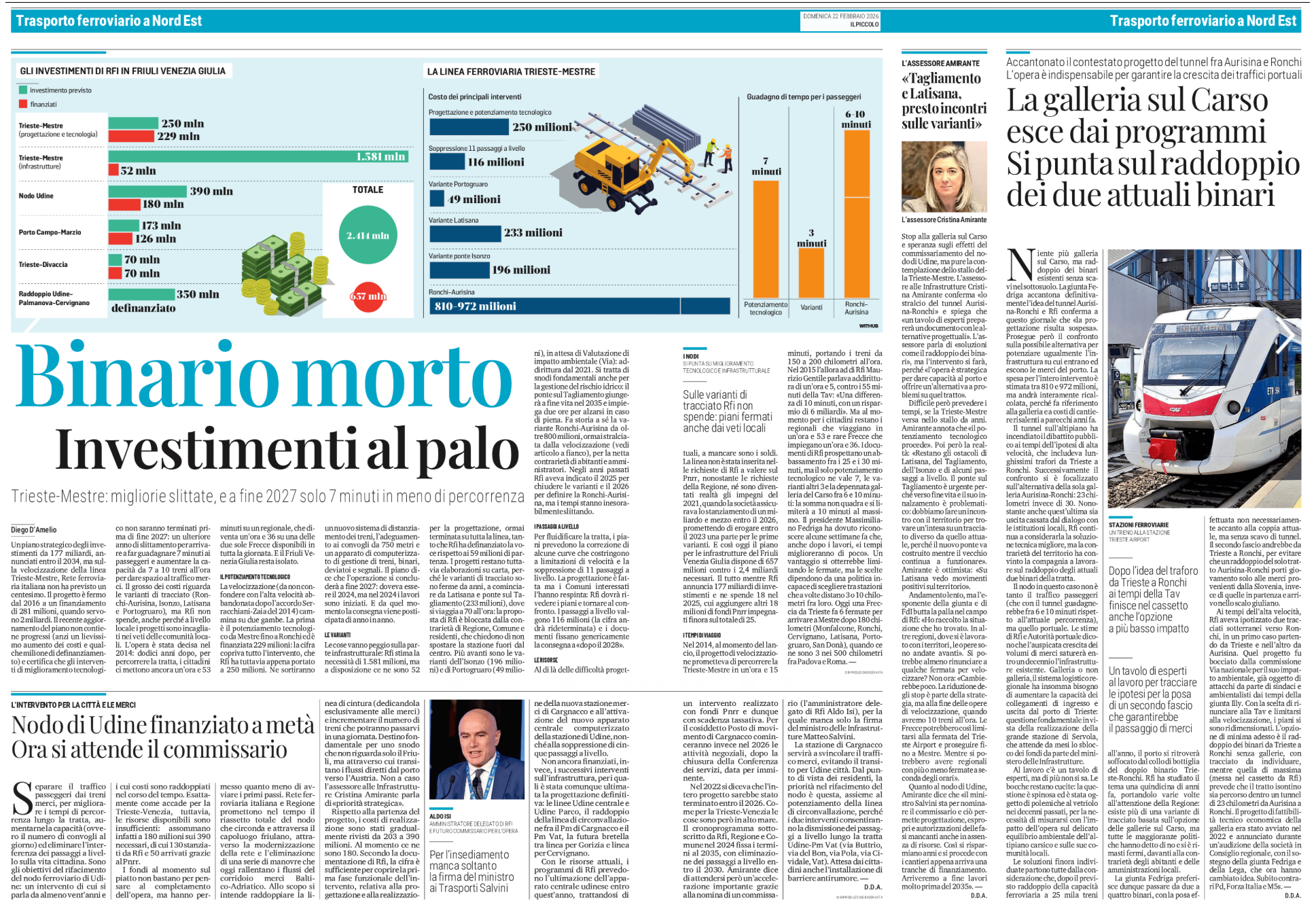 Trieste-Mestre: migliorie slittate, e a fine 2027 solo 7 minuti in meno di percorrenza