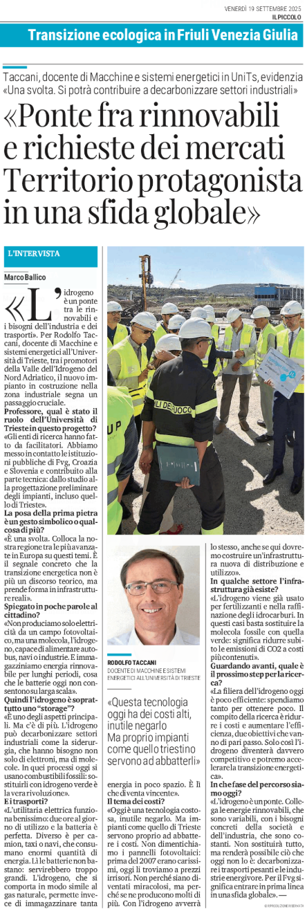 Taccani, docente di Macchine e sistemi energetici in UniTs, evidenzia «Una svolta. Si potrà contribuire a decarbonizzare settori industriali»