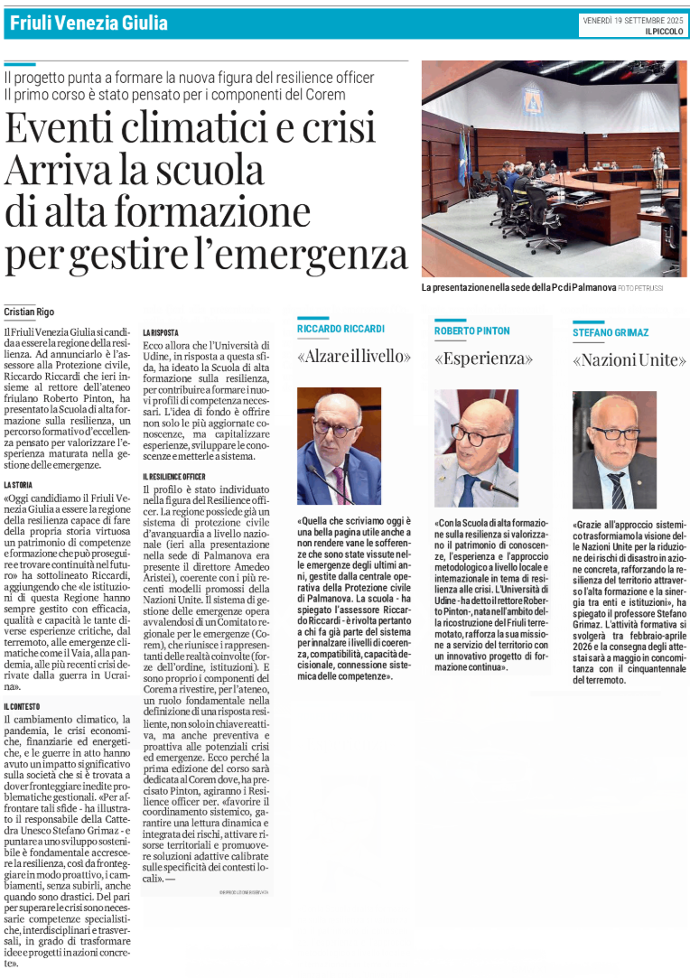 Il progetto punta a formare la nuova figura del resilience officer Il primo corso è stato pensato per i componenti del Corem