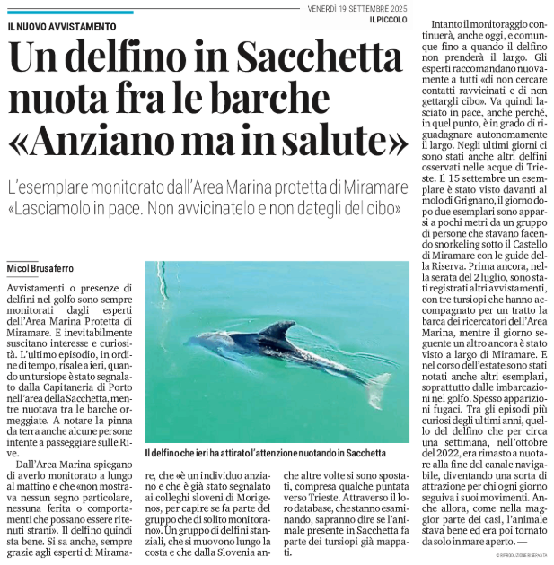 Il giovane palombo liberato dall'Area marina di Miramare - è stato pescato a Grignano e tenuto prima in osservazione