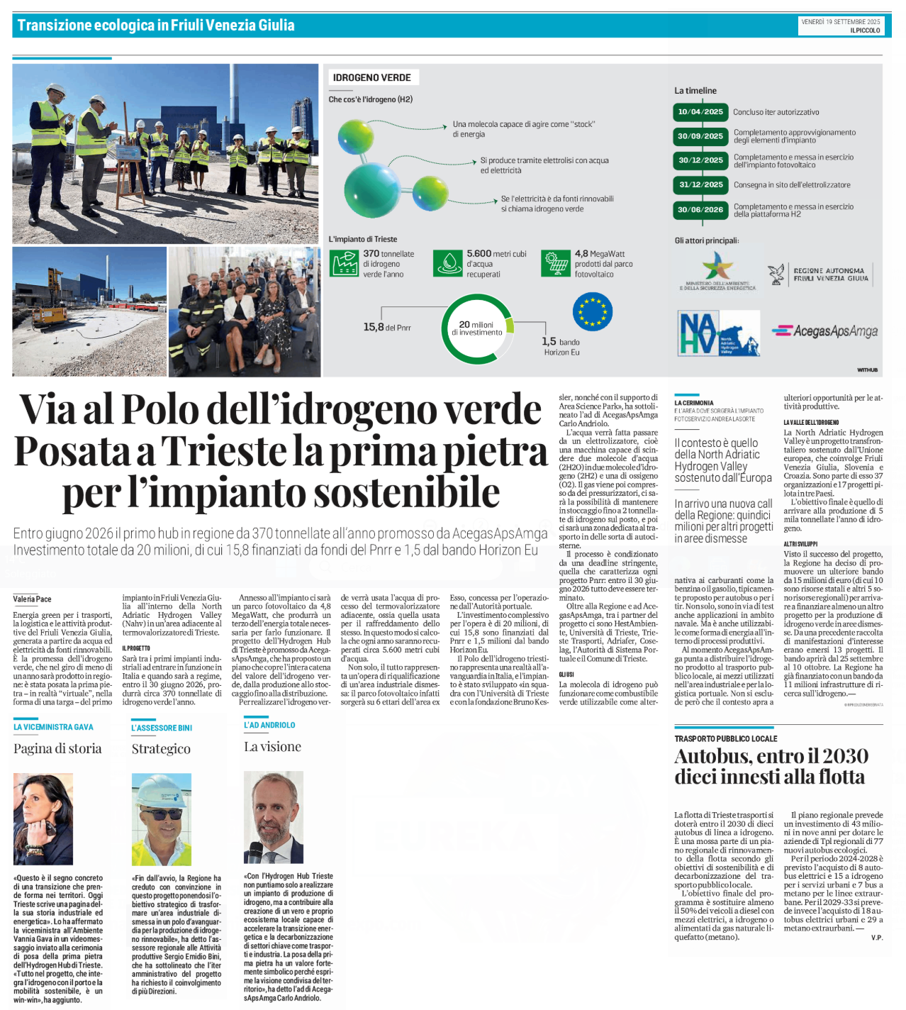 Via al Polo dell'idrogeno verde - Posata a Trieste la prima pietra per l'impianto sostenibile