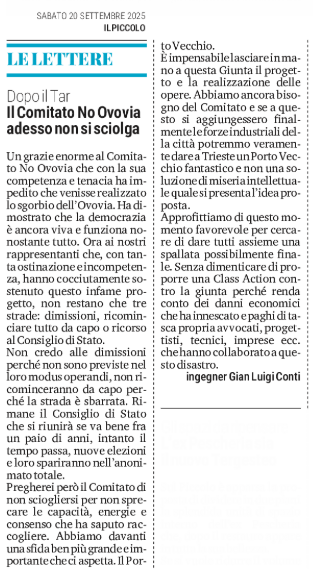 SEGNALAZIONI - Dopo il Tar - Il Comitato No Ovovia adesso non si sciolga - (ingegner Gian Luigi Conti)