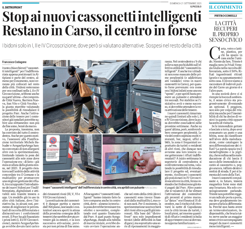 Il dietrofront - Stop ai nuovi cassonetti intelligenti - Restano in Carso, il centro in forse