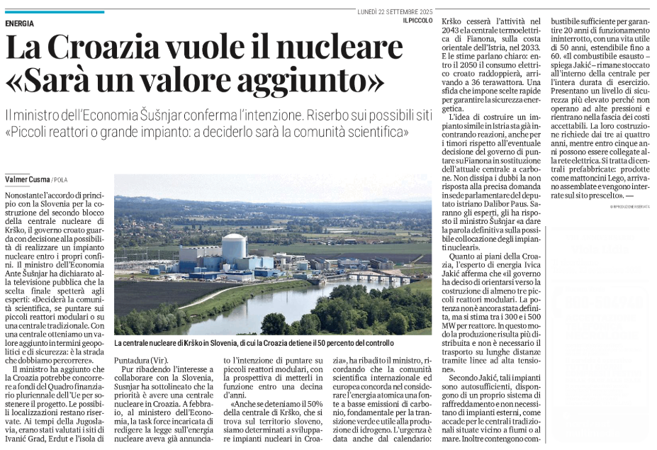Energia - La Croazia vuole il nucleare «Sarà un valore aggiunto»