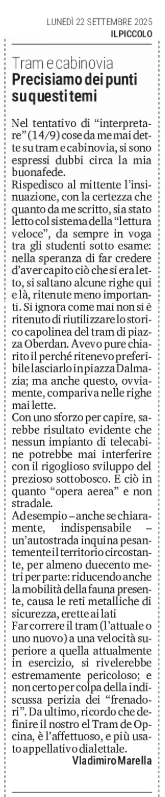 SEGNALAZIONI - Trasporti ed esigenze - Quante mistificazioni sul Tram di Opicina - (Vladimiro Marella) ETERNAMENTE LUI!!!!