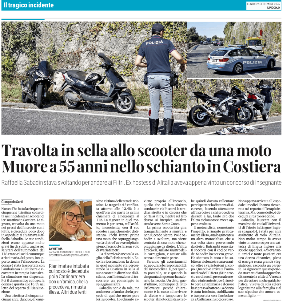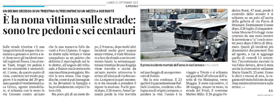 È la nona vittima sulle strade: sono tre pedoni e sei centauri - un decimo decesso di un triestino oltreconfine su un mezzo a due ruote