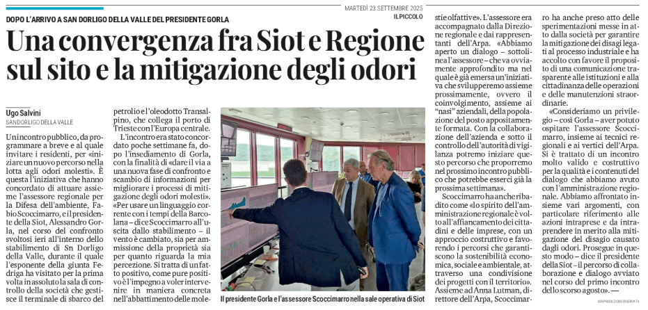 Una convergenza fra Siot e Regione sul sito e la mitigazione degli odori - dopo l'arrivo a San Dorligo della Valle del presidente Gorla