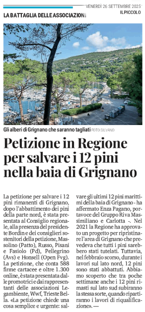 Petizione in Regione per salvare i 12 pini nella baia di Grignano - la battaglia delle associazioni