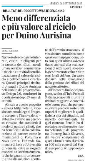 Meno differenziata e più valore al riciclo per Duino Aurisina - i risultati del progetto Waste Design 2.0