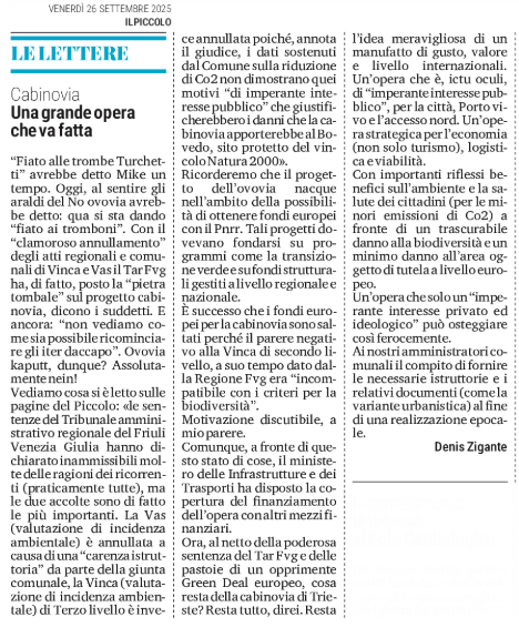 SEGNALAZIONI - Cabinovia - Quella revoca dei fondi Pnrr... - (Livio Stefani)