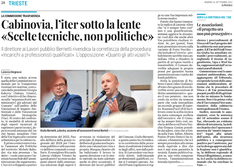 Cabinovia, l'iter sotto la lente «Scelte tecniche, non politiche» - la Commissione Trasparenza