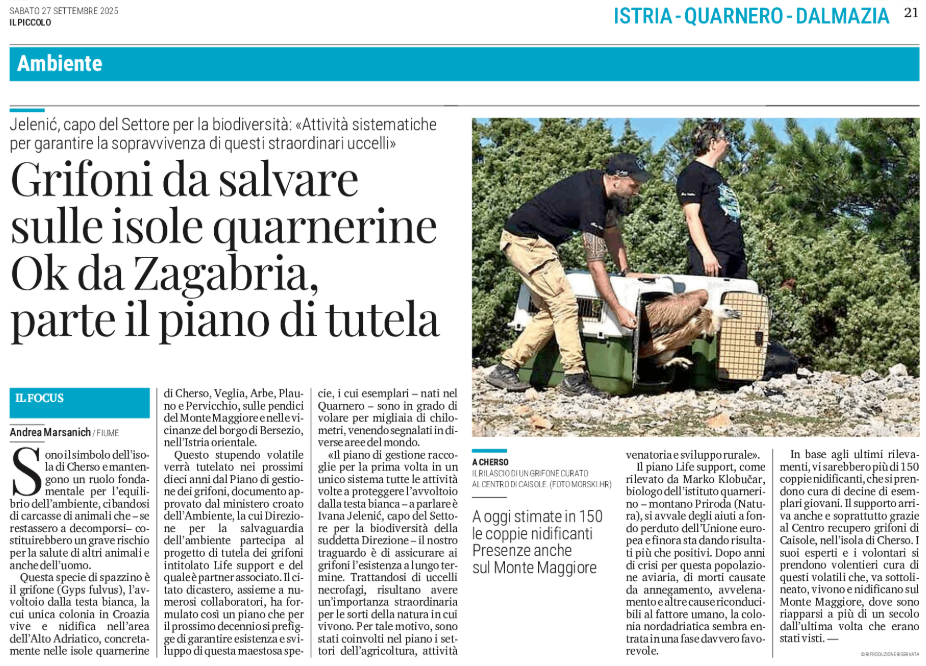 Jelenić, capo del Settore per la biodiversità : «Attività sistematiche per garantire la sopravvivenza di questi straordinari uccelli»