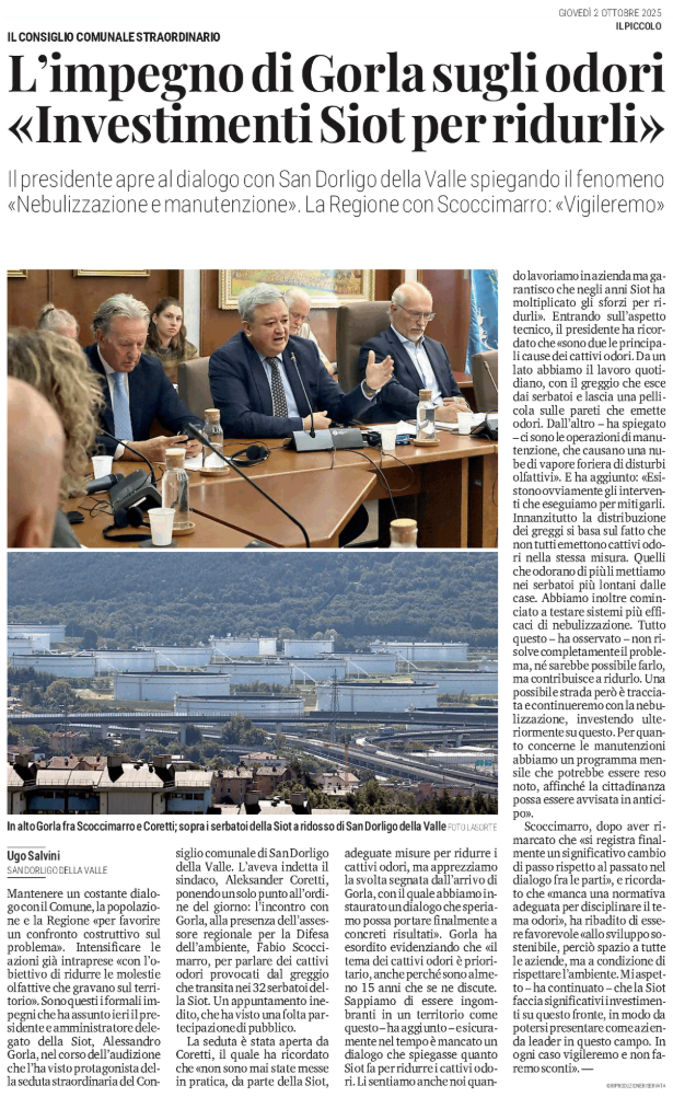 L'impegno di Gorla sugli odori «Investimenti Siot per ridurli» - il consiglio comunale straordinario