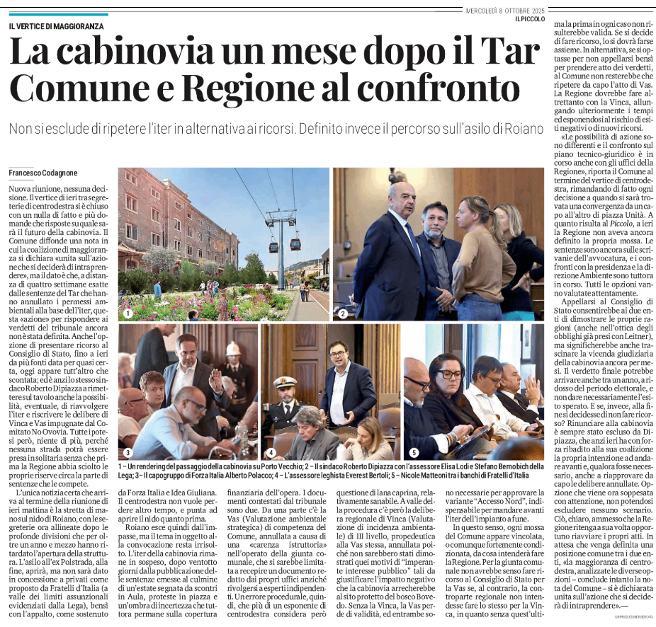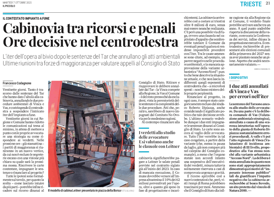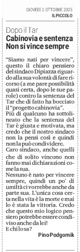 SEGNALAZIONI - Dopo il Tar - Cabinovia e sentenza - Non si vince sempre - (Pino Podgornik)