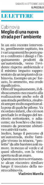 SEGNALAZIONI - Cabinovia - Meglio di una nuova strada per l'ambiente - (Vladimiro Marella) CHE NOIA!!! MA NON SI STUFA MAI?