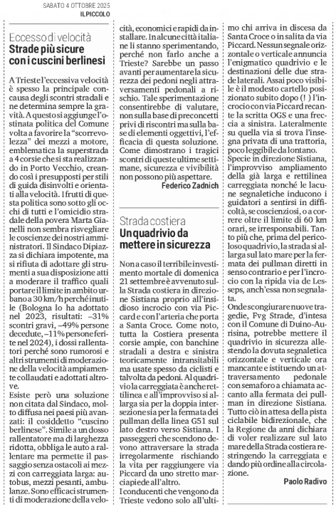SEGNALAZIONI - Eccesso di velocità . Strade più sicure con i cuscini berlinesi - (Federico Zadnich)