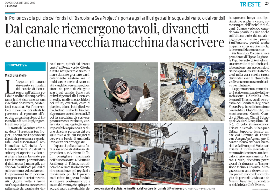 In Ponterosso la pulizia dei fondali di "Barcolana Sea Project" riporta a galla rifiuti gettati in acqua dal vento o dai vandali