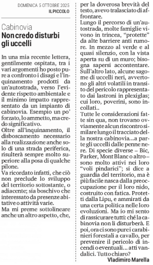 SEGNALAZIONI - Cabinovia - Non credo disturbi gli uccelli - (Vladimiro Marella) NON SMETTE, E' LA SUA FISSAZIONE!