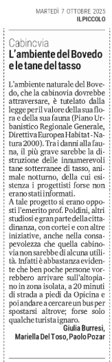 SEGNALAZIONI - Cabinovia - L'ambiente del Bovedo e le tane del tasso - (Giulia Burresi, Mariella Del Toso, Paolo Pozar)