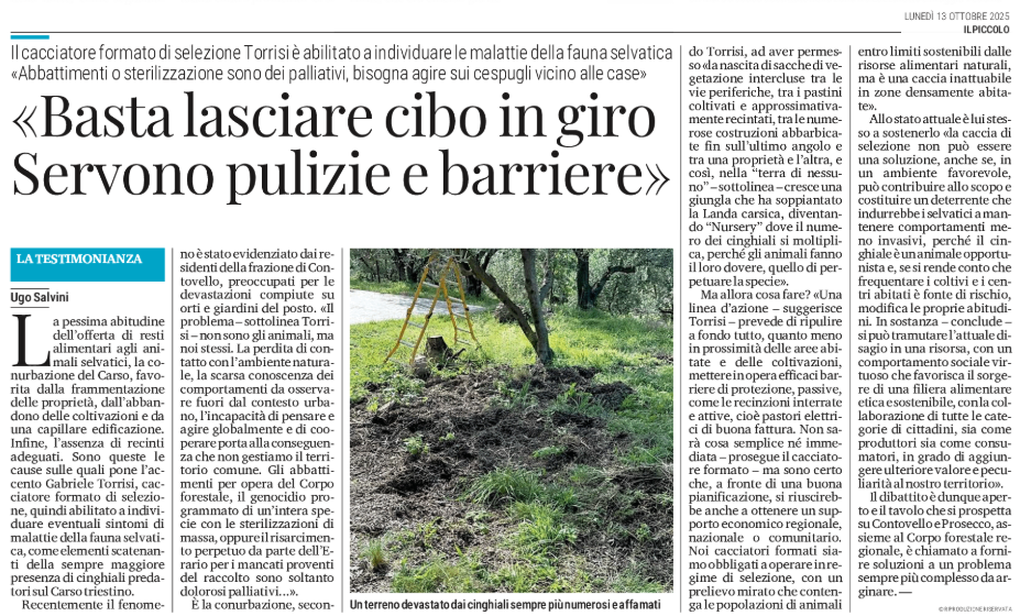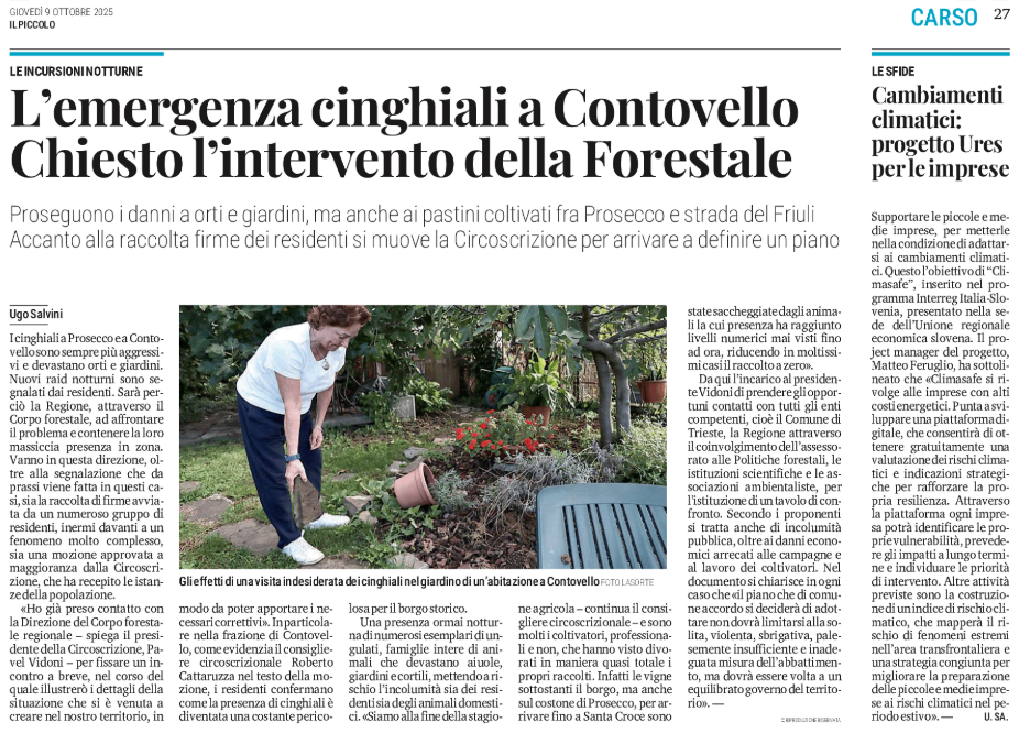 L'emergenza cinghiali a Contovello - Chiesto l'intervento della Forestale