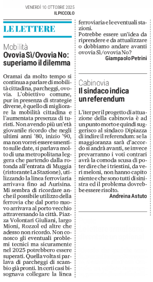 SEGNALAZIONI - Mobilità - Ovovia Sì/Ovovia No: superiamo il dilemma - (Giampaolo Petrini)
