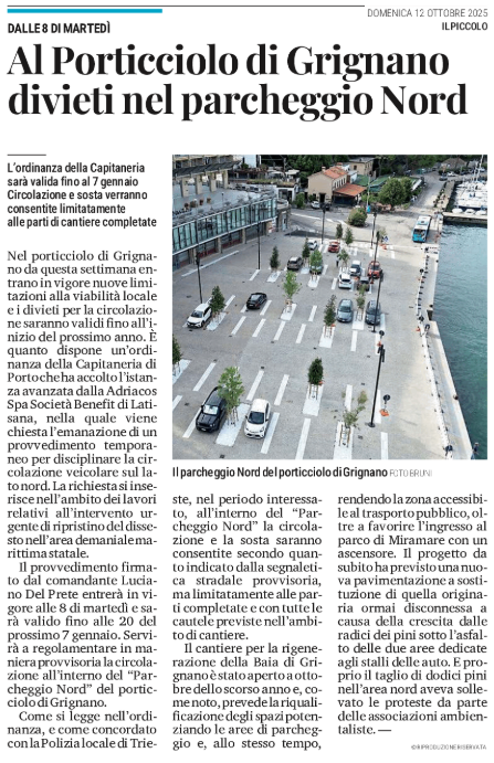 Al Porticciolo di Grignano divieti nel parcheggio Nord