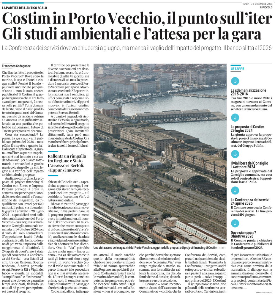 Costim in Porto Vecchio, il punto sull'iter Gli studi ambientali e l'attesa per la gara - la partita dell'antico scalo