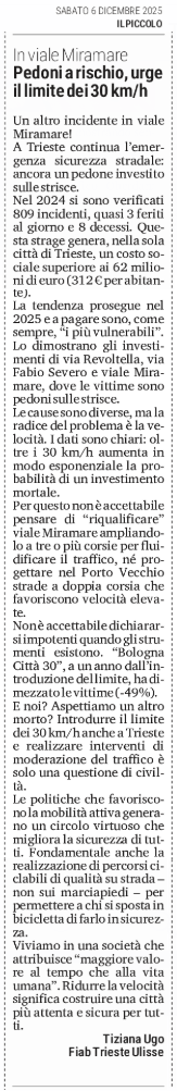 SEGNALAZIONI - In viale Miramare - Pedoni a richio, urge il limite dei 30 km/h - (Tiziana Ugo - Fiab Trieste Ulisse)