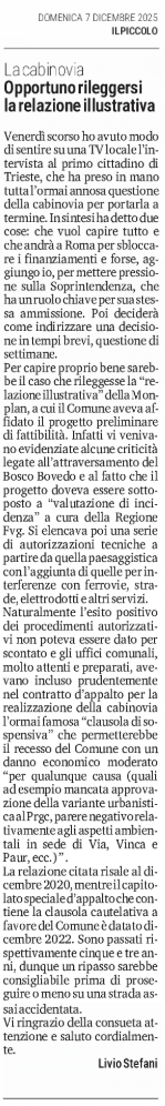 SEGNALAZIONI - La cabinovia - Opportuno rileggersi la relazione illustrativa - (Livio Stefani)